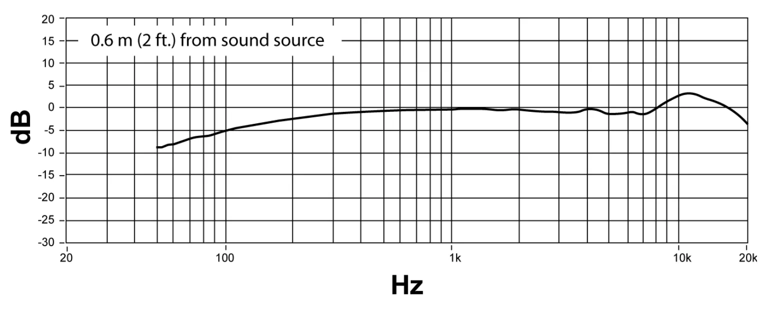 - Кардіоїдна діаграма з відсіканням понад 20 дБ поза віссю дозволяє фокусуватися на голосі та зменшувати вплив навколишніх шумів і моніторів.