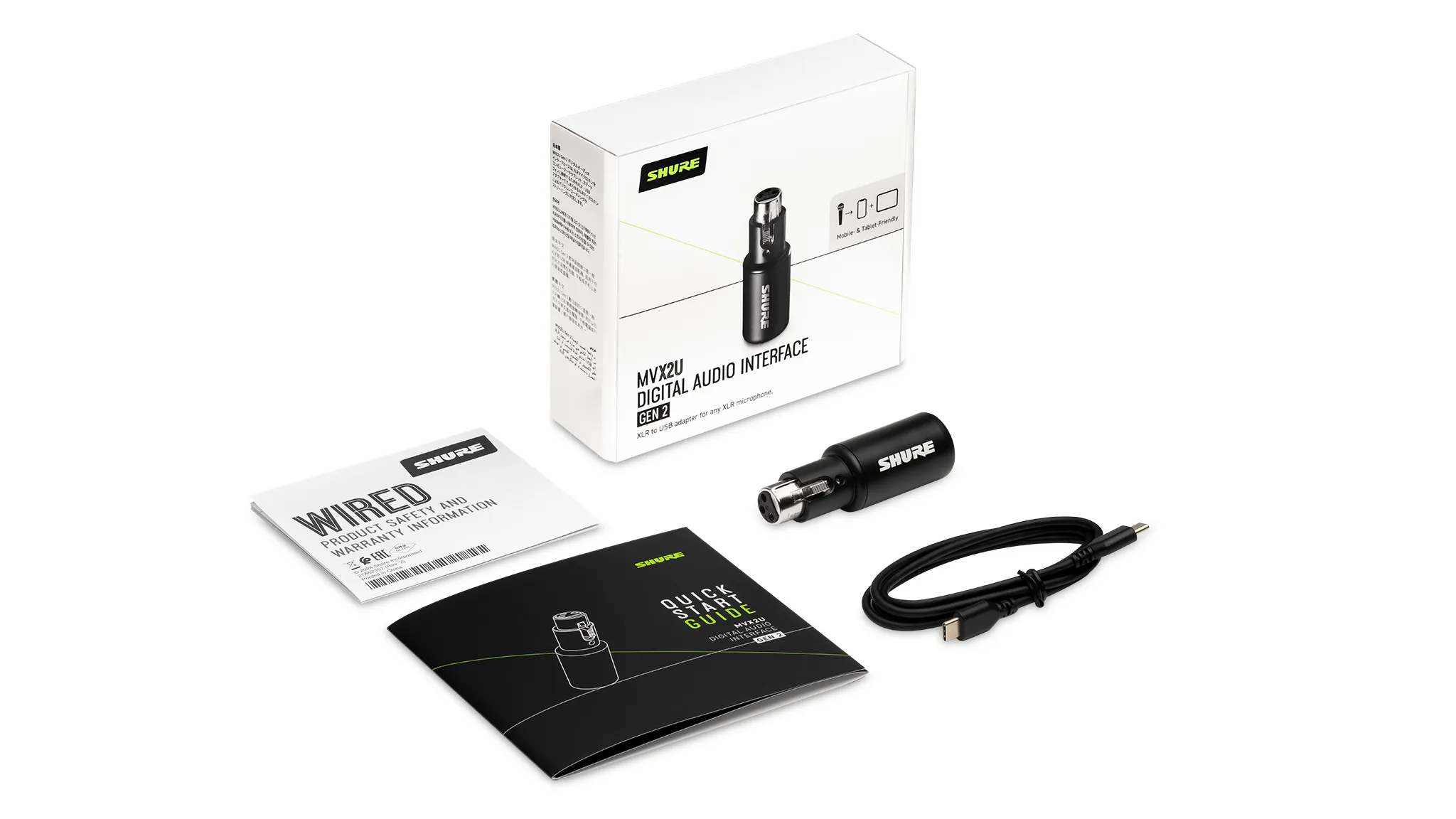 У коробці: MVX2U Gen 2 + USB-C↔USB-C кабель 1 м + стартовий гайд.